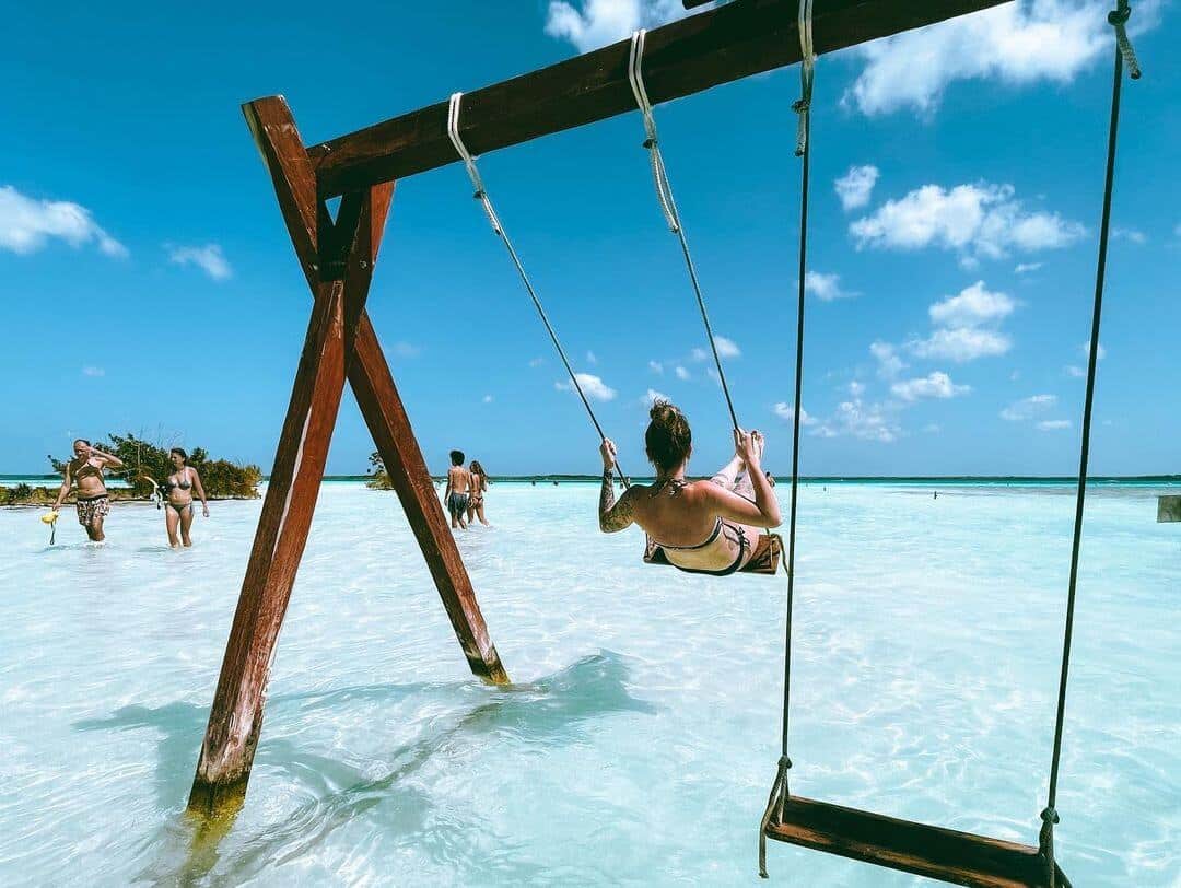 - Nadar en sus cristalinas aguas: Si o sí tienes que meterte a nadar, el nivel del agua es muy bajo por lo tanto puedes caminar varios metros antes de que se ponga profundo, el agua es increíblemente cristalina y refrescante; hay hamacas instaladas al nivel del agua en las que puedes acostarte y disfrutar de la vida que te ha llevado hasta aquí, así que gózalo.