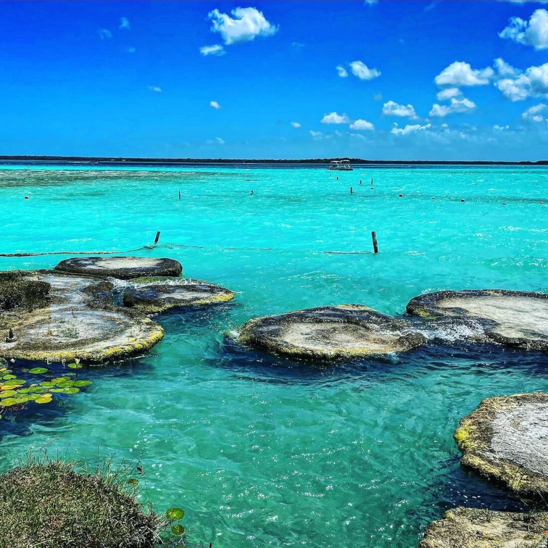 No quiero olvidar decirte que tengas cuidado con los Estromatolitos; éstas son grandes piedras vivientes que puedes ver en la foto superior, que se han encargado de purificar y limpiar la laguna desde hace miles de años, gracias a ellas Bacalar tiene los colores que tiene y es tan bonita como la ves, así que respétalos, cuídalos y no los toques.
