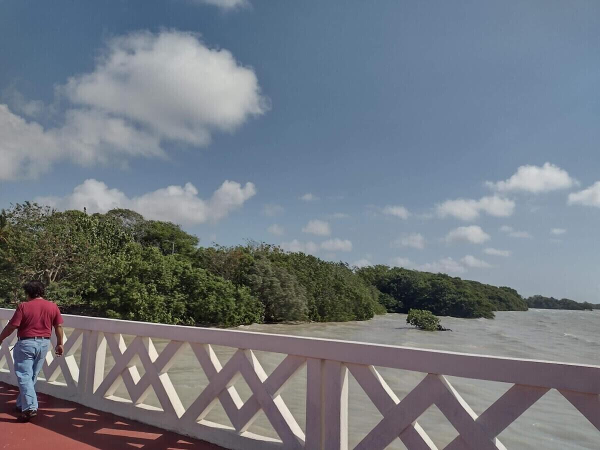 Llega por Bulevar Bahía hasta la intersección con Primo de Verdad y cruza el puente peatonal/vehicular hacia la isleta. La aproximación es recta y sin pérdida. Suele haber espacio para detenerse unos minutos cerca del acceso (estacionamiento formal, limitado); si vienes en taxi, lo cómodo es pedir el descenso en el inicio del puente y caminar el resto. En días de calor, ese tramo se siente más largo de lo que parece (sol directo, casi sin sombra).