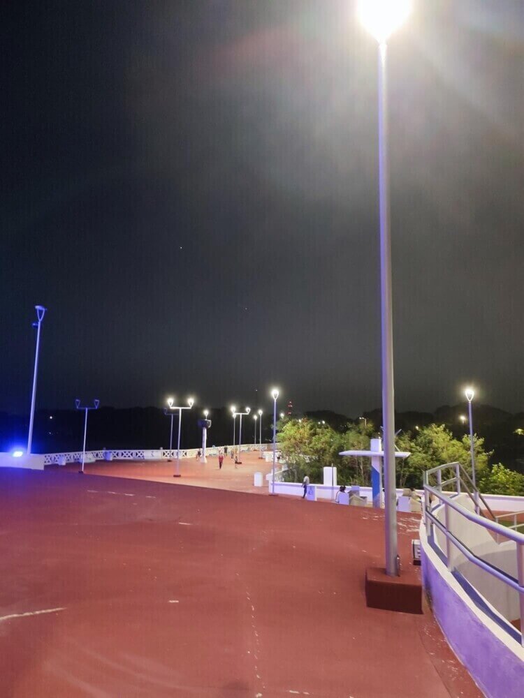 Mi ruta corta: entrada por el puente, vuelta completa a la plaza y foto hacia la “X” con la bahía de fondo. Si quieres una toma más limpia, camina un poco por el muelle/paso lateral para alinear la cruz; si hay nubes altas, el blanco de la estructura se tiñe bonito. Ojo con el viento: a veces levanta el agua y salpica la cámara.