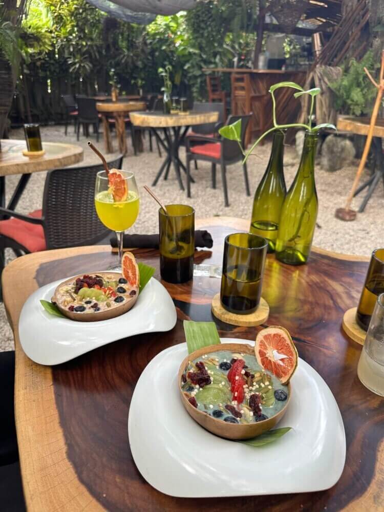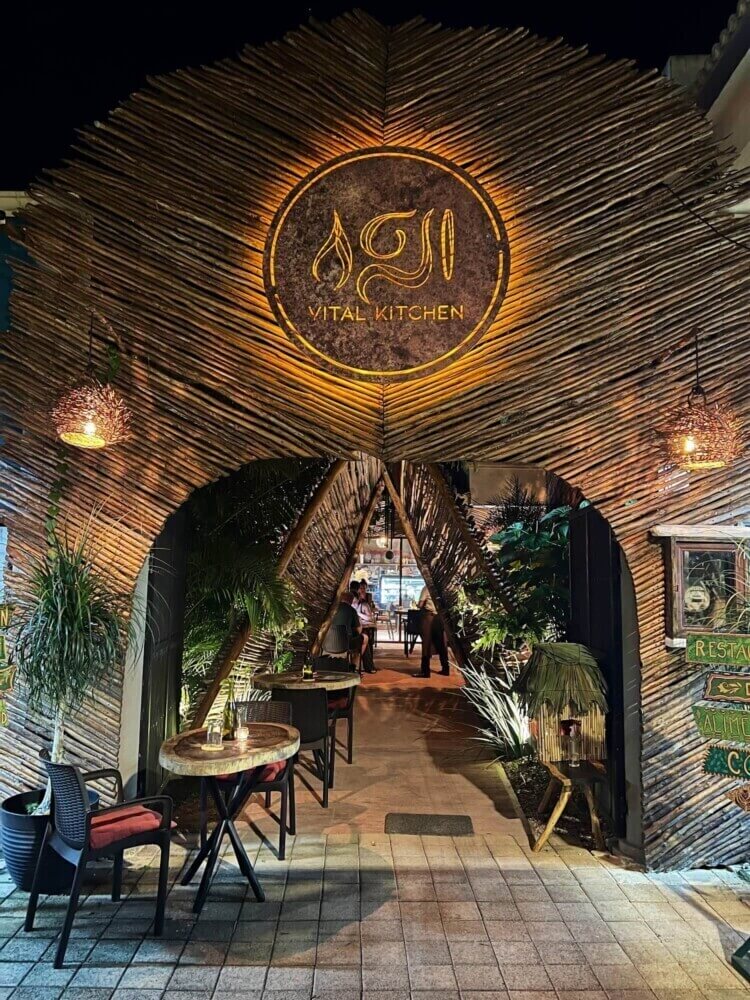 Restaurante Agni Vital Kitchen Bacalar se disfruta especialmente al atardecer, cuando baja el sol y corre la brisa en el patio. La luz cálida y las mesas entre árboles hacen que la cena fluya sin prisa; es el plan perfecto después de la laguna.