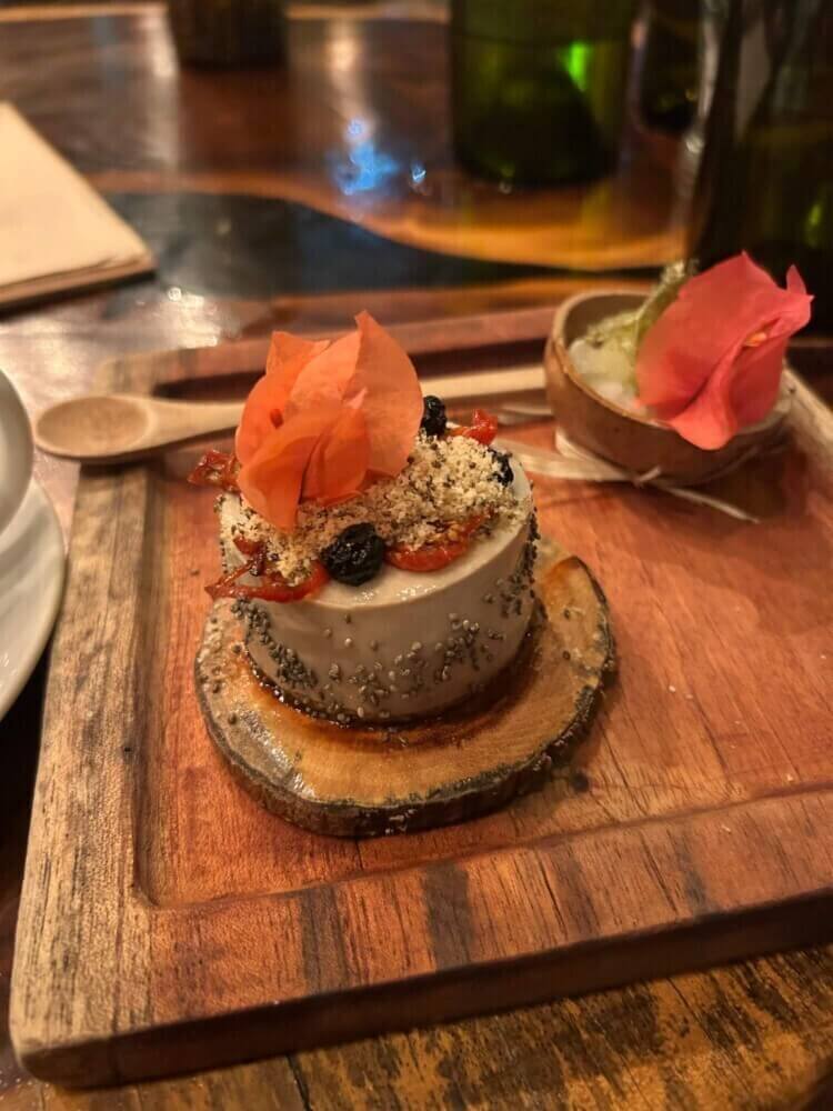 Cocina de inspiración vegetal con técnicas de fermentación y huerta. Platos como moussaka de berenjena, ñoquis de betabel y tacos de jamaica con tempeh.