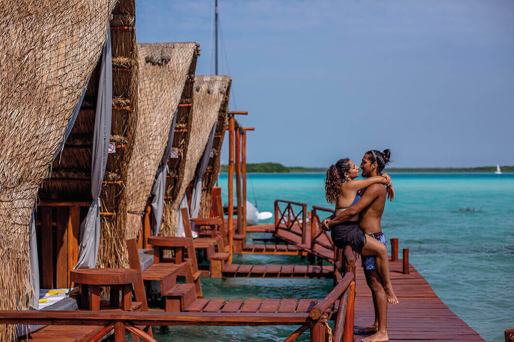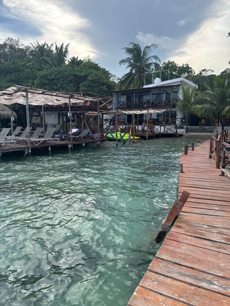 Bertilla Lagoon & Beach Club Bacalar ofrece camastros, camas de sol y hamacas frente a la laguna, además de muelle, kayaks y paddle para salir a remar con calma. Hay área infantil, bar completo, música en vivo en ciertas fechas y, por las noches, cenas románticas en cabañas privadas sobre el agua. Lo curioso es que cada zona tiene su propio ritmo, así que puedes decidir si buscas silencio o ambiente.