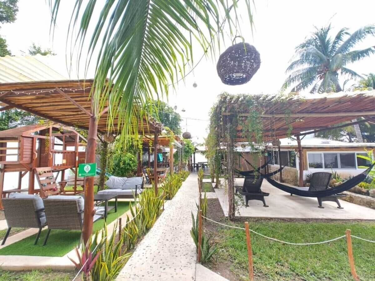 Hay terrazas, camastros, hamacas y áreas frente a la laguna; el ambiente es abierto. Pregunta por política de mascotas al reservar, puede variar por temporada.