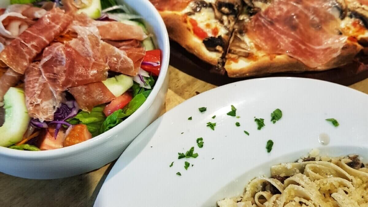 Cocina italiana tradicional: pastas hechas en casa, pizzas de masa madre, pan y postres caseros, además de vino italiano y bebidas clásicas.