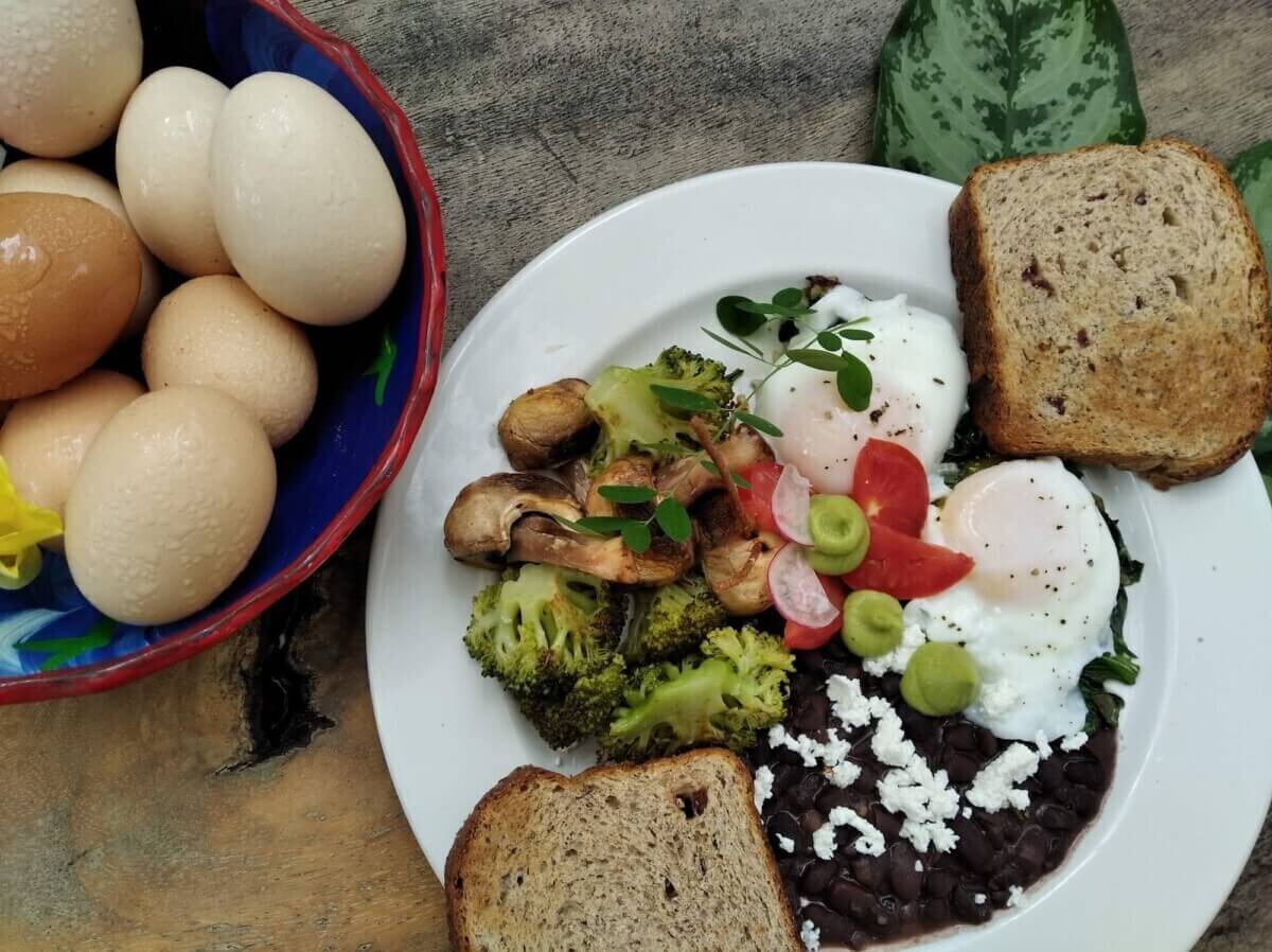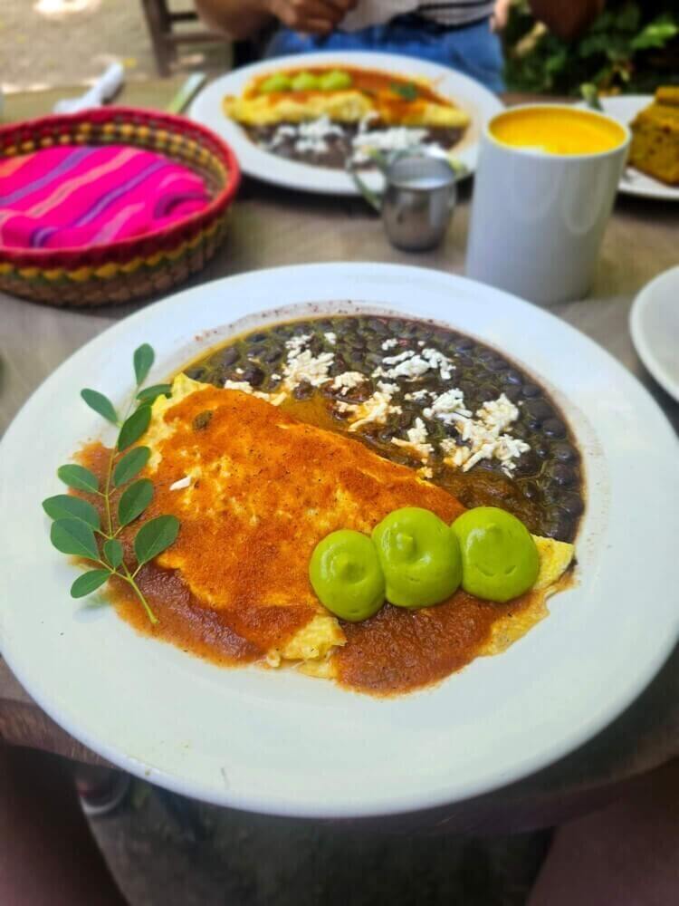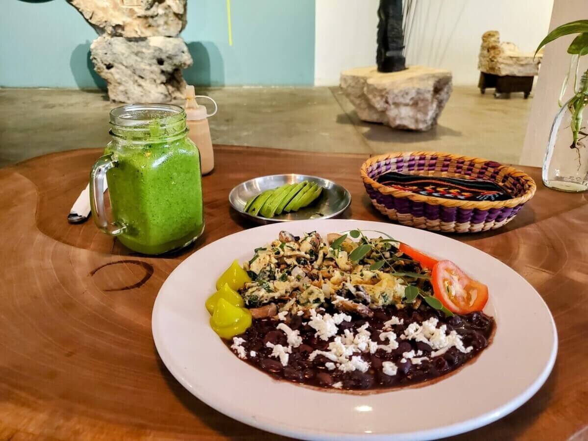Desayunos y brunch con enfoque fresco: chilaquiles con chaya, omelettes, hot cakes, jugos y opciones vegetarianas, veganas y gluten friendly.