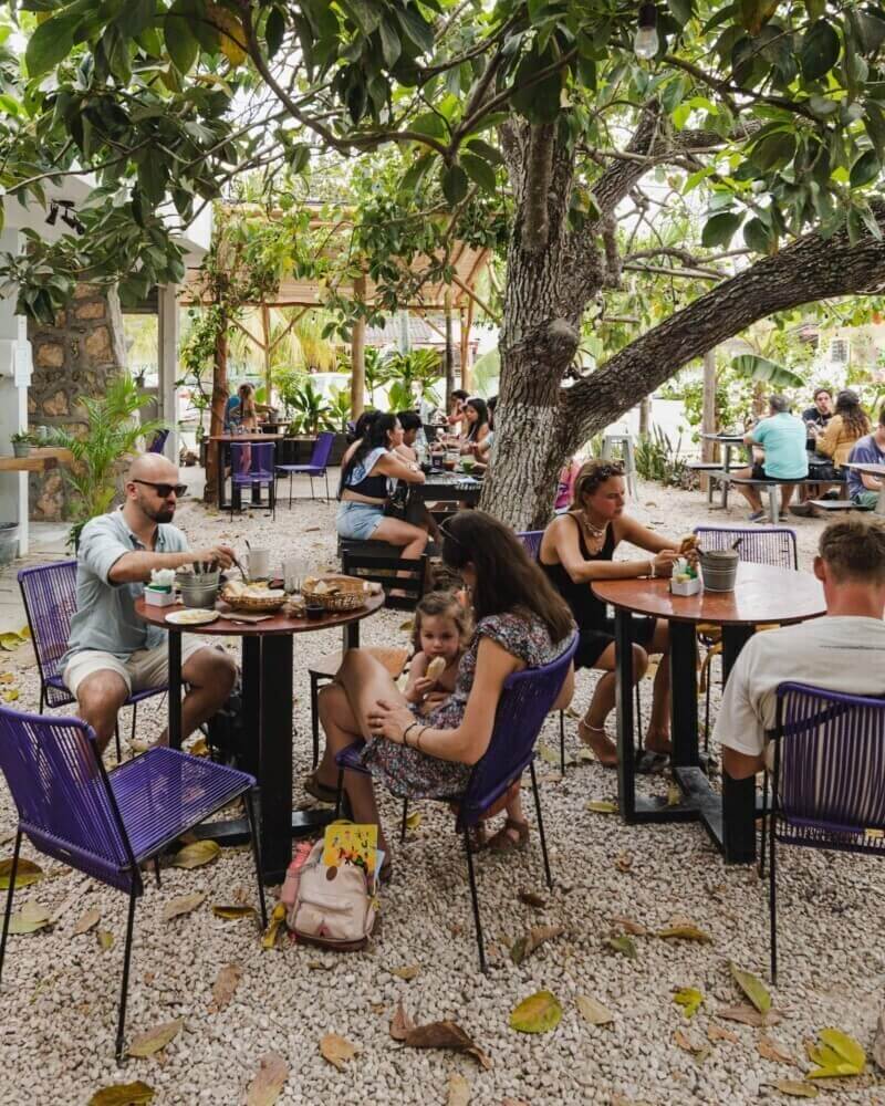 Restaurante Enamora Bacalar funciona para desayunos con amigos, parejas o familia. También se presta para trabajar un rato con buen WiFi y sombra, o para una parada breve de café y pan. La música es tranquila y se conversa bien.