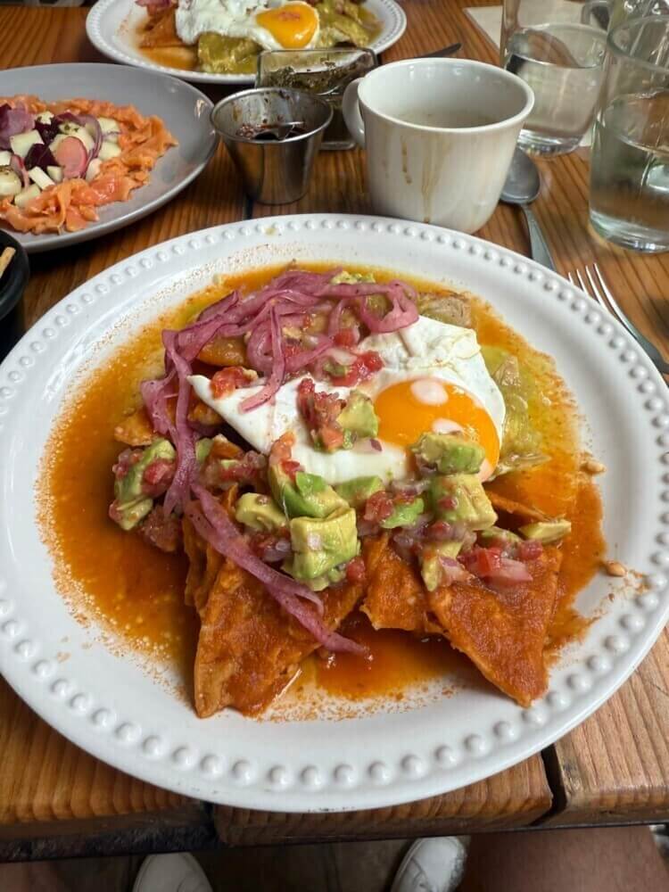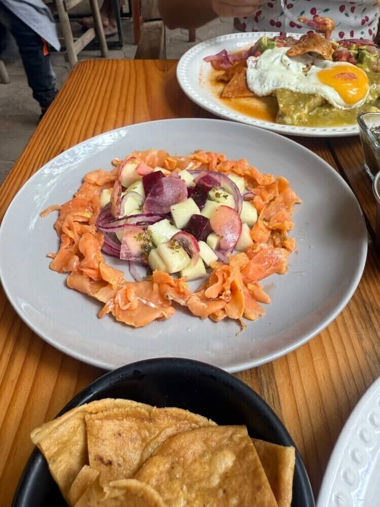 Restaurante Madre Masa Bacalar va de panadería artesanal con cocina de desayuno y brunch. La propuesta mezcla panes de masa madre, bagels y croissants con tostas, huevos y sándwiches. Si hay que elegir, pide el bagel de salmón ahumado, los chilaquiles (con huevo o carnitas), los huevos divorciados y un rollo de canela; de dulce, el pain au chocolat o un brownie suelen salir muy bien.