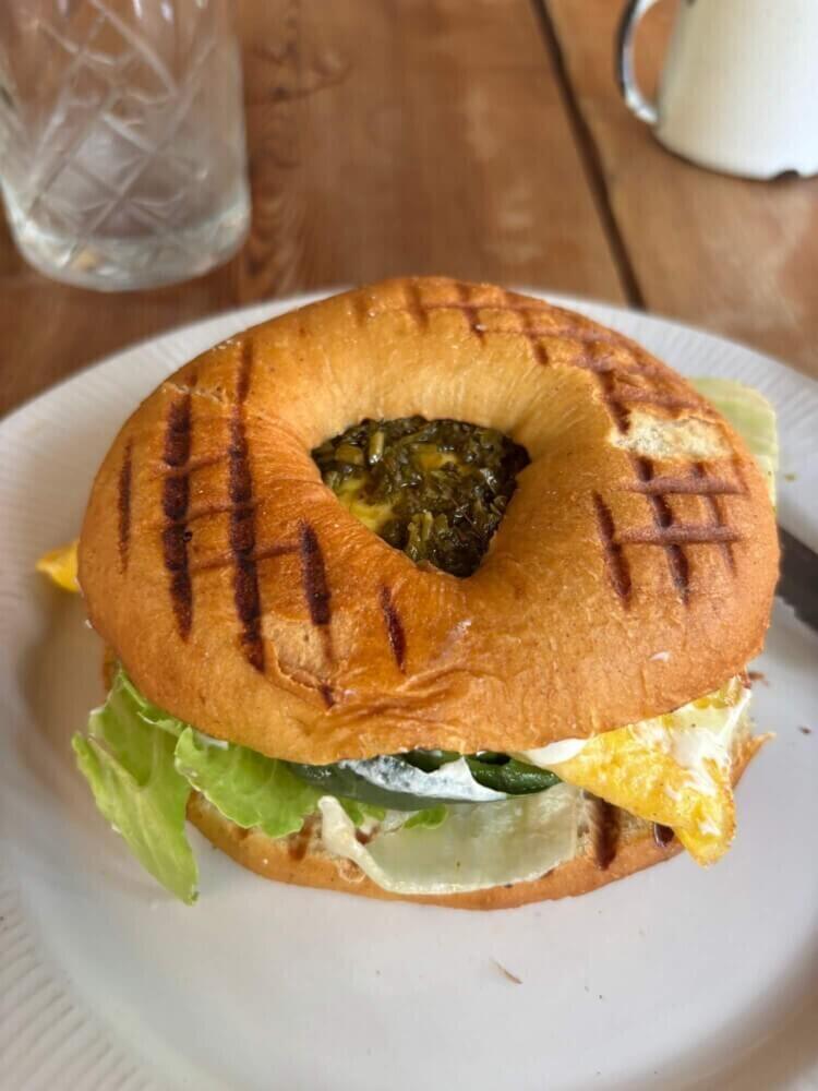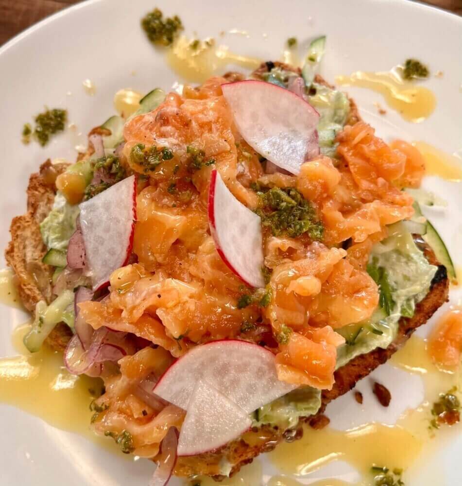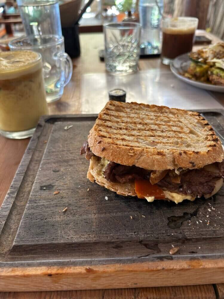 Lo curioso es que aquí la experiencia depende mucho del pan del día: tostas en sourdough crujiente, croissant tibio con mantequilla o un pita con hummus y vegetales. Al final, el combo “platillo salado + café y pan dulce” funciona de maravilla cuando se busca algo rico sin complicaciones.