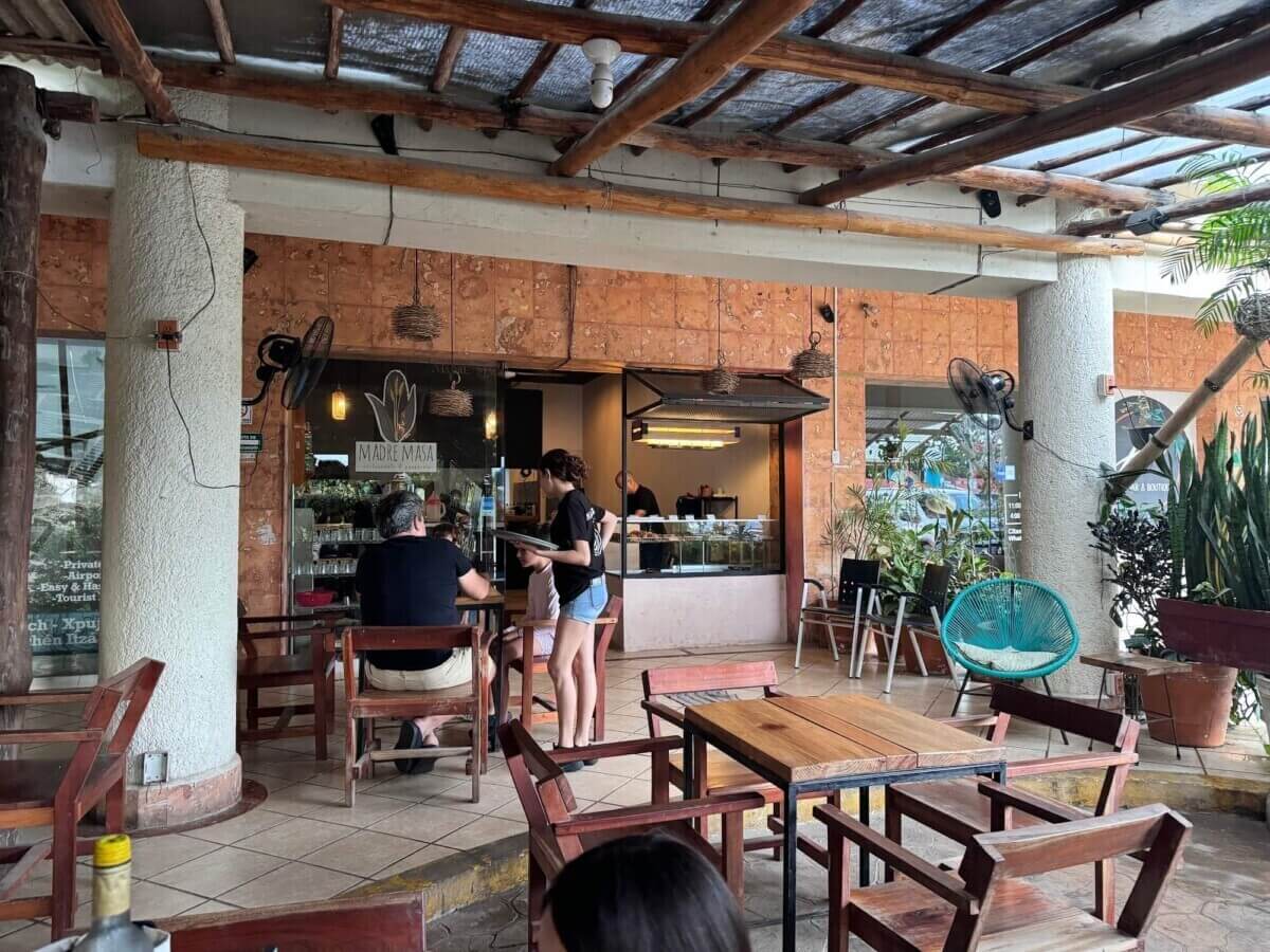 Restaurante Madre Masa Bacalar se mueve en rango $$: desayunos y brunch a precio moderado considerando porciones, pan artesanal y bebidas de café. Con un platillo y bebida, el gasto queda razonable para la zona.
