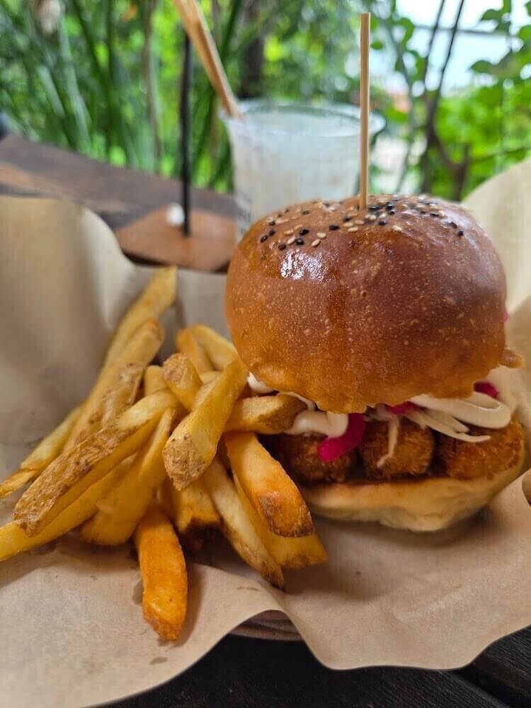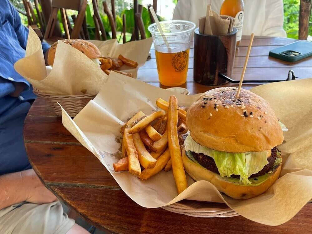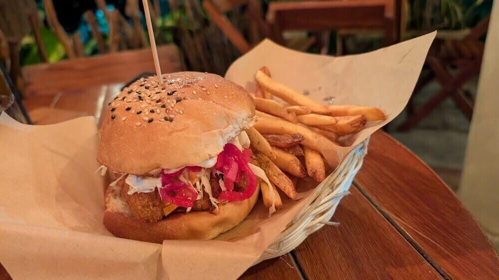 Mango y Chile Bacalar maneja un rango $$ con porciones completas. Las hamburguesas con papas rondan los 200 MXN; si agregas bebida o postre, el ticket sube moderado y sigue siendo accesible para la zona.