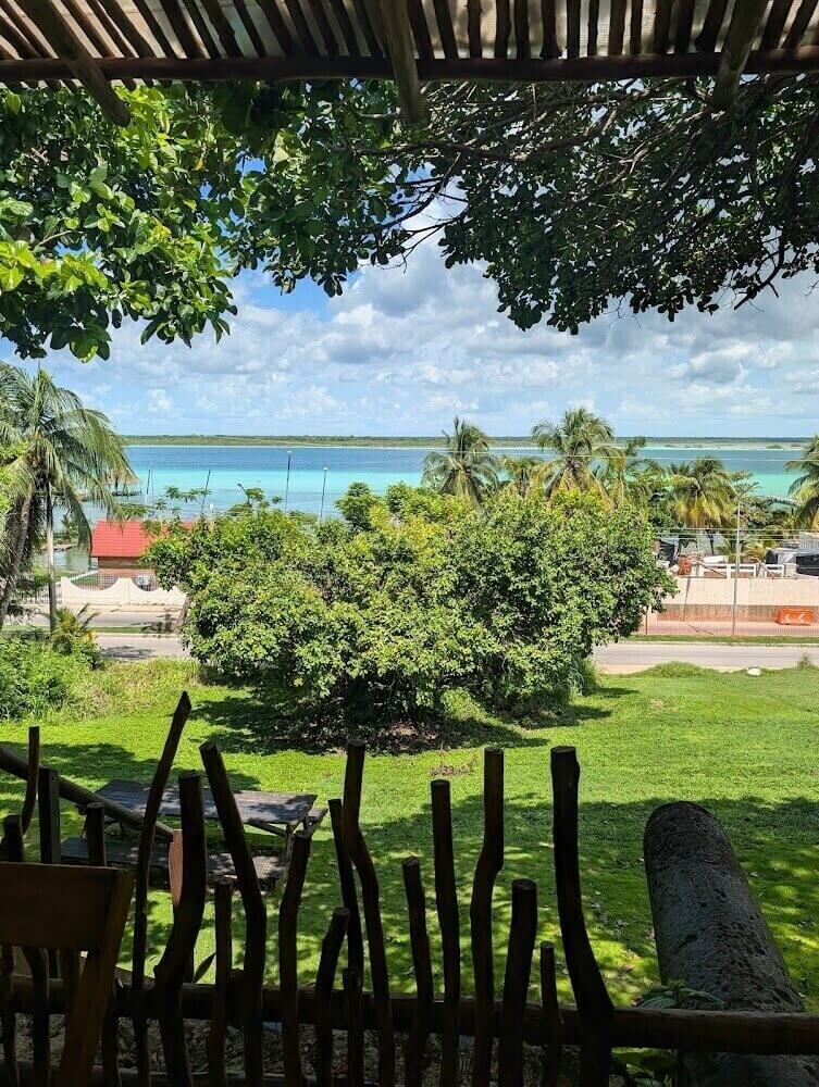 Mango y Chile Bacalar es ese sitio que combina vista directa a la laguna, vibra relajada y comida plant‑based bien hecha. Está junto al Fuerte de San Felipe, así que llegas caminando desde el centro sin complicaciones. La propuesta es sencilla y honesta: antojos de comfort food en versión vegana, con ingredientes cuidados y un ambiente que invita a quedarse un rato más.