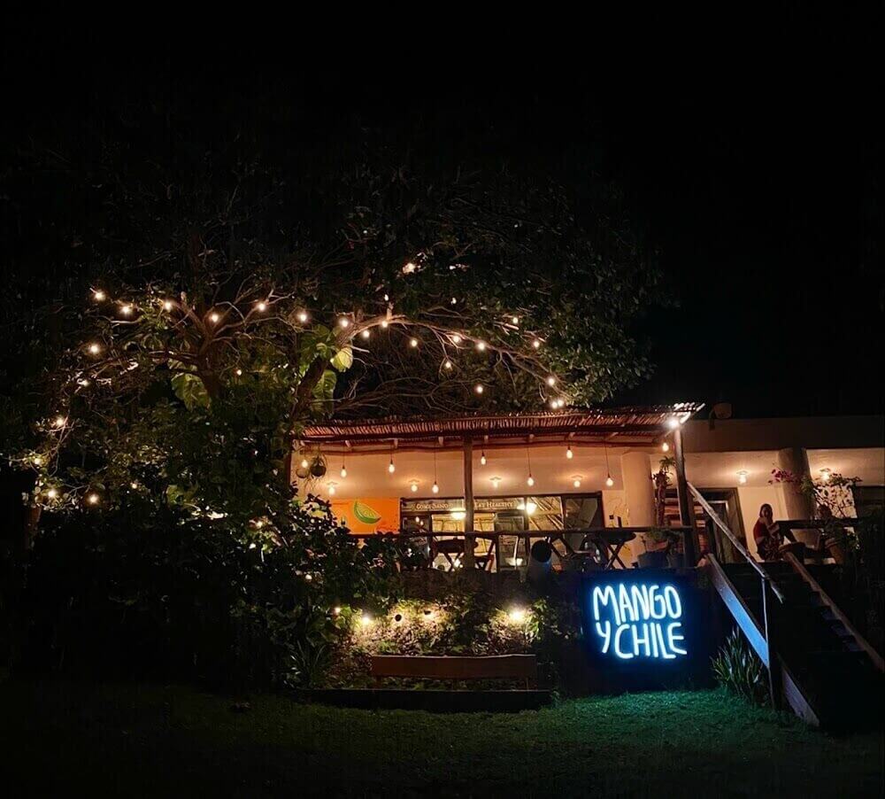 Mango y Chile Bacalar se disfruta a media tarde y al atardecer. Con el sol bajando, la terraza toma brisa y la laguna cambia de tonos; suena lógico, pero el lugar luce más. ¿Ir de noche? También, aunque aquí el pretexto es ver el agua tranquila mientras llegan las papas fritas.