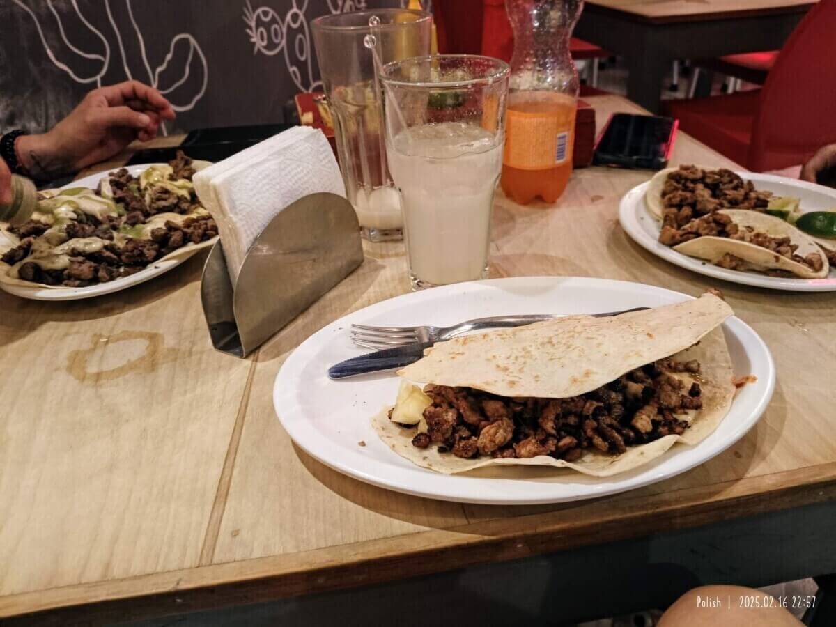 Como referencia: un tako de plancha ronda los 60–65 pesos y un takeso de pastor suele estar por debajo de los cien; cortes como arrachera o sirloin suben un poco. Nada rebuscado: pagas lo que comes y sales bien servido.