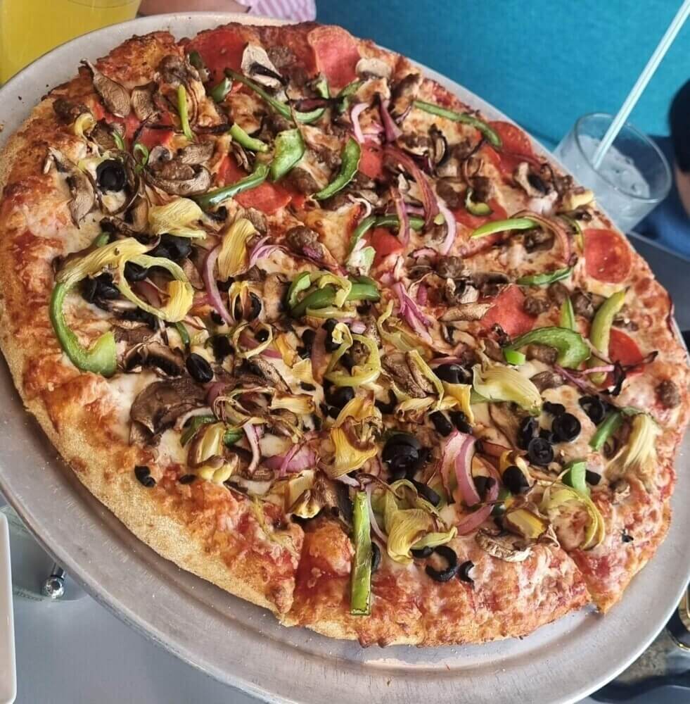Pizzas al estilo italiano con opciones como Margarita, Pepperoni, Veggy, Suprema y una versiĂłn con jamĂłn serrano; ademĂĄs de refrescos, cafĂ©, cervezas y coctelerĂa.