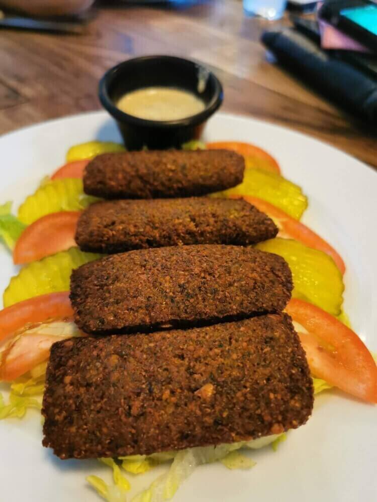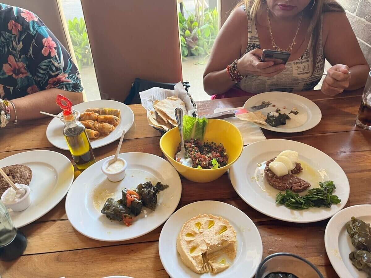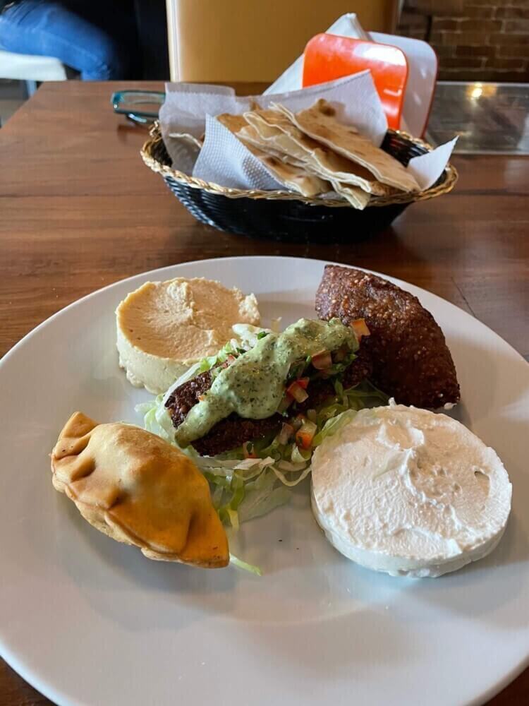 Cocina libanesa y de Medio Oriente: labne, falafel, kibbe, tacos árabes de shawarma y opciones de cortes como picaña para compartir en mesa.