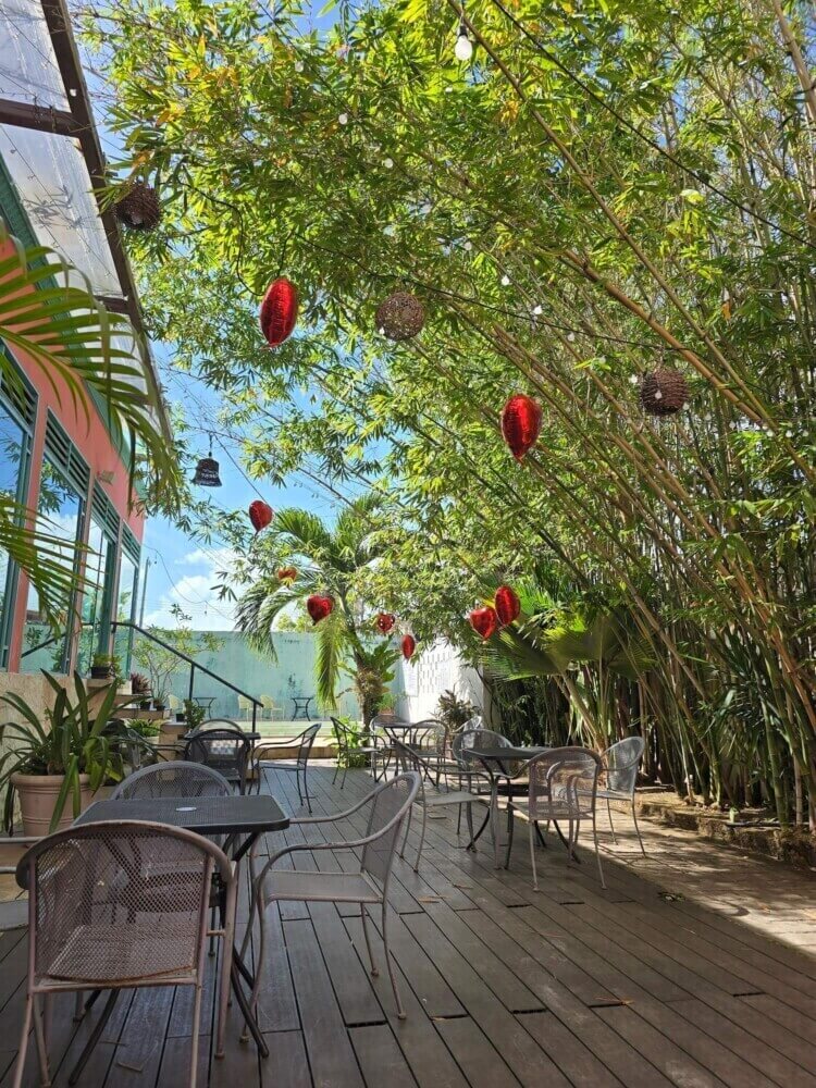 Mantura Bistro Garden Chetumal luce a primera hora, con desayunos desde las 7:30 y un patio tranquilo que ayuda a arrancar el día sin prisas. Por la noche el jardín toma carácter, hay luces tenues y ambiente más social; cuando refresca, se agradece sentarse afuera.