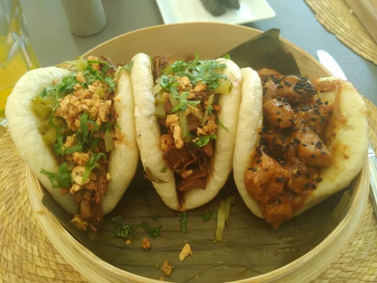 Cocina internacional con influencia mediterránea y de Medio Oriente, desayunos completos y varias opciones vegetarianas y veganas claramente marcadas en la carta.
