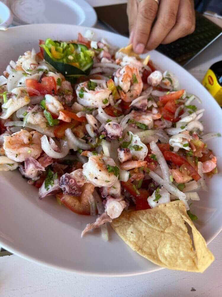 Mariscos y pescados al momento: pulpo a la parrilla, pargo al pil pil, cazuela y cocteles. Preparaciones sencillas, porciones generosas y sazón de costa.